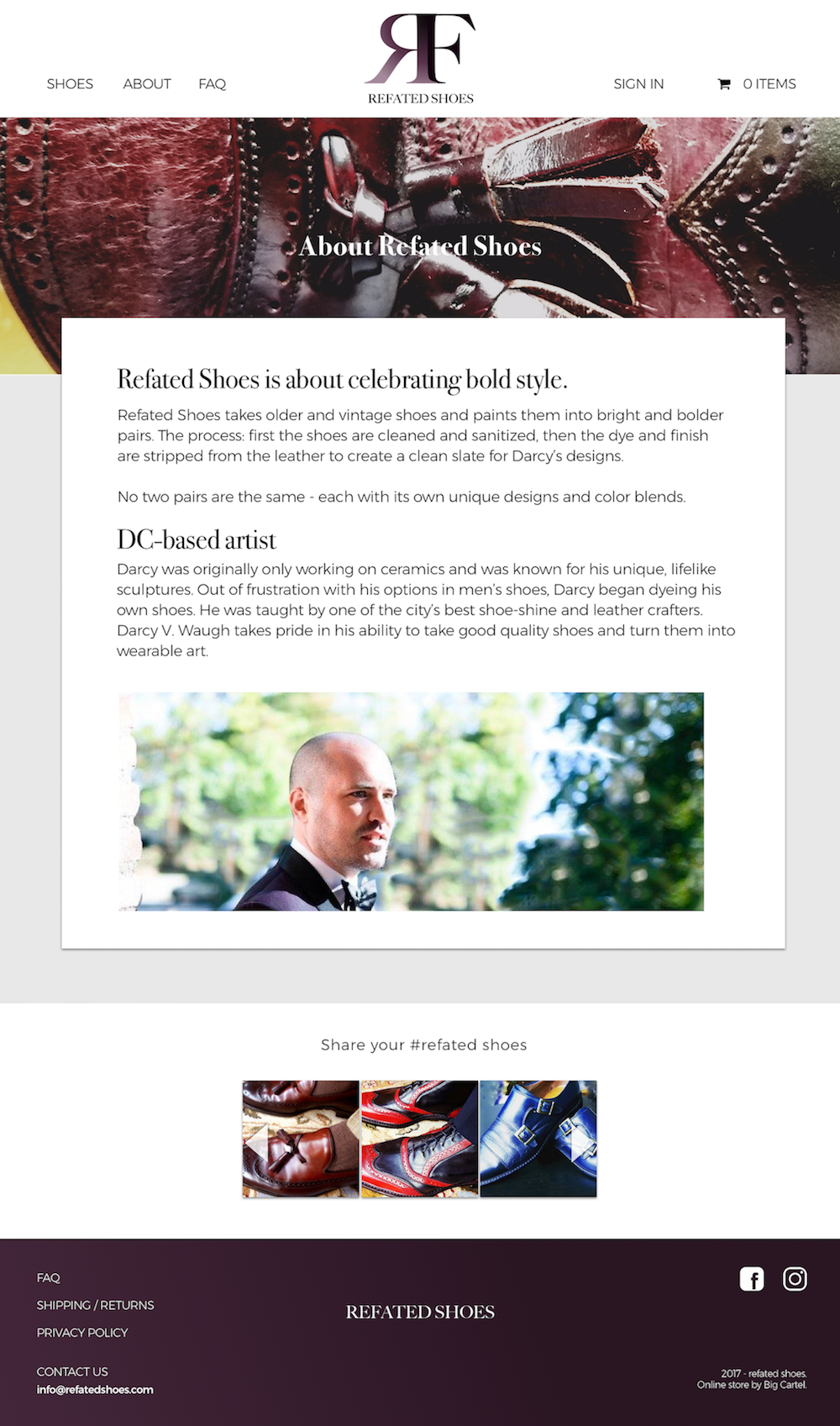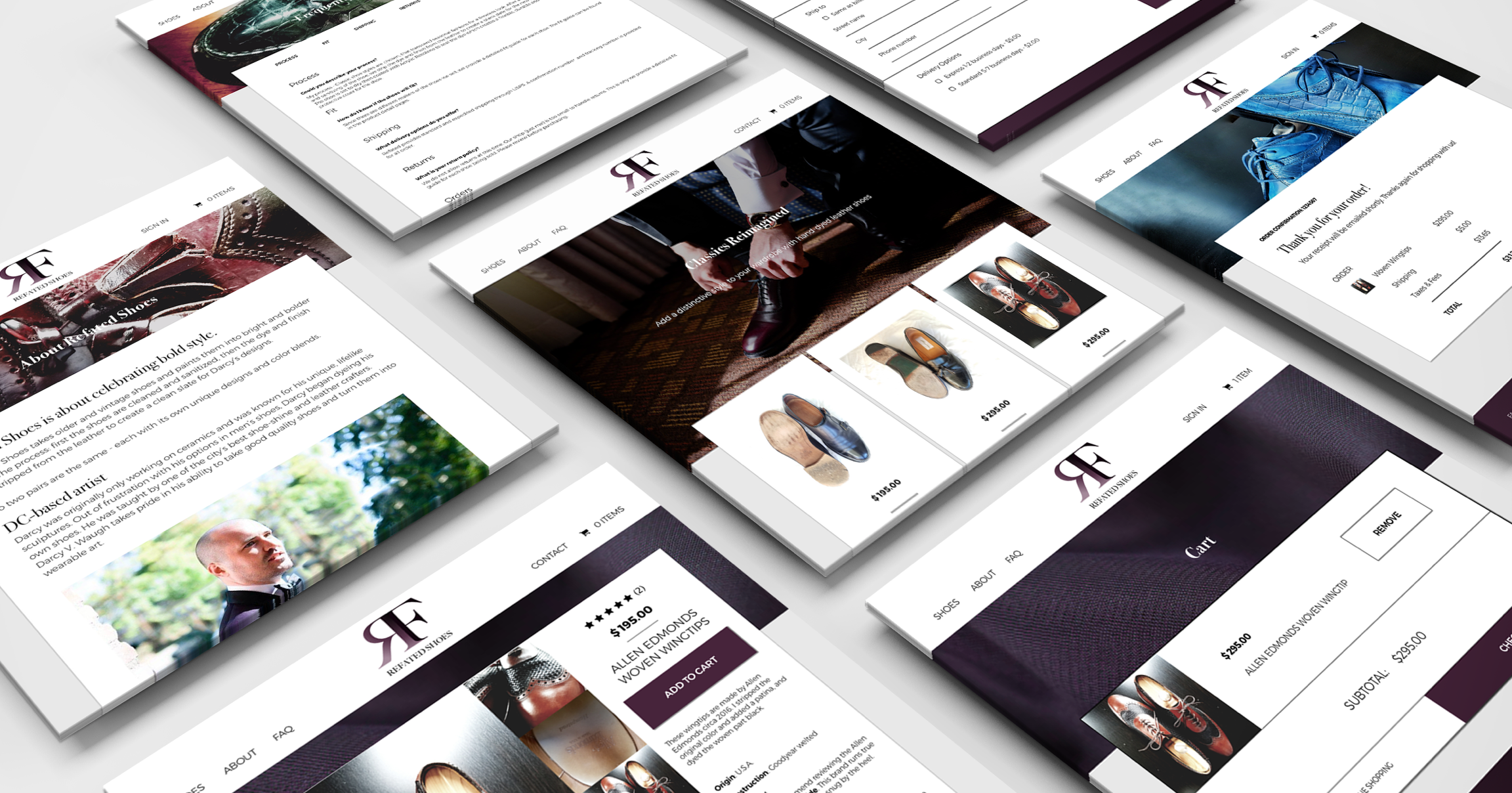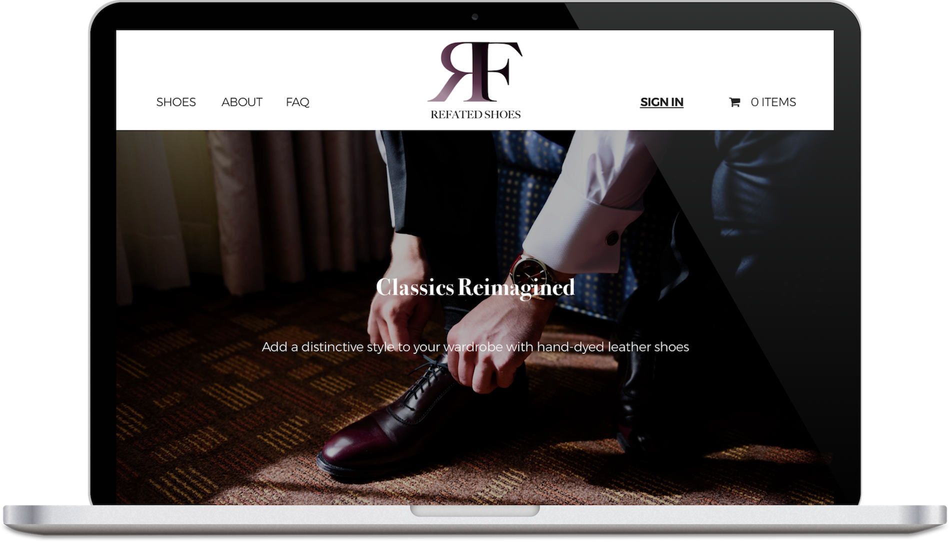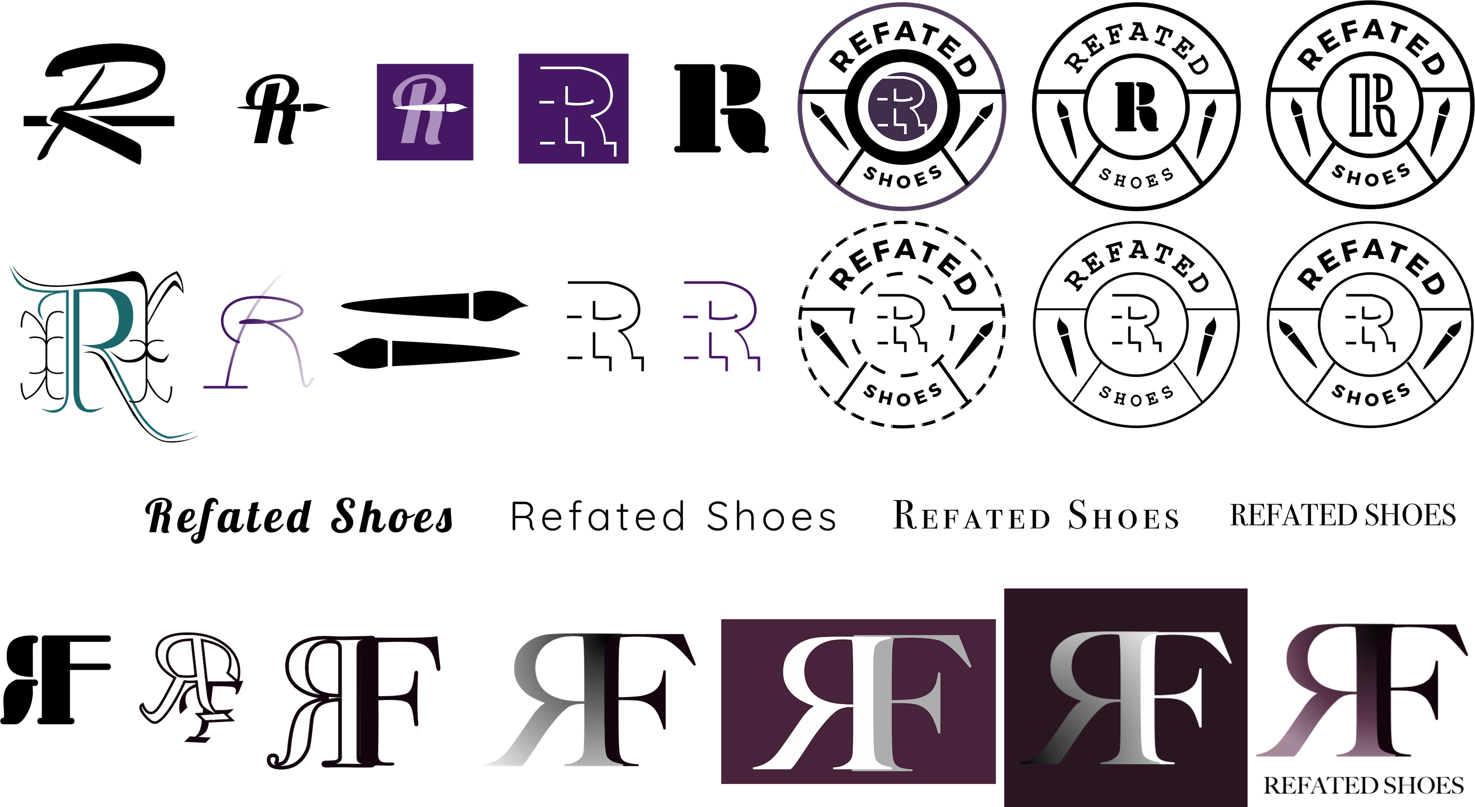 Working directly with the client, I always try to understand their goals and needs are before starting anything. The client’s mission for his company, Refated Shoes (RFS) is to repurpose and redesign older shoes. Although it is a sustainable business model, the client chose older shoes because he preferred the canvas they provided. He also viewed this as an art form rather than strictly a business, so revenue wasn’t his ultimate goal.