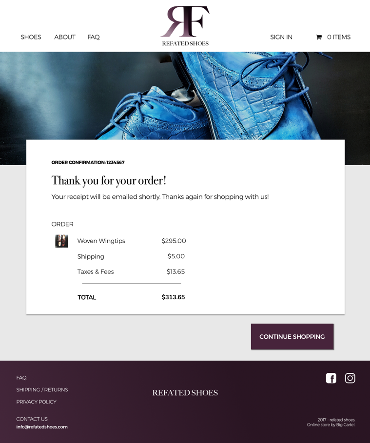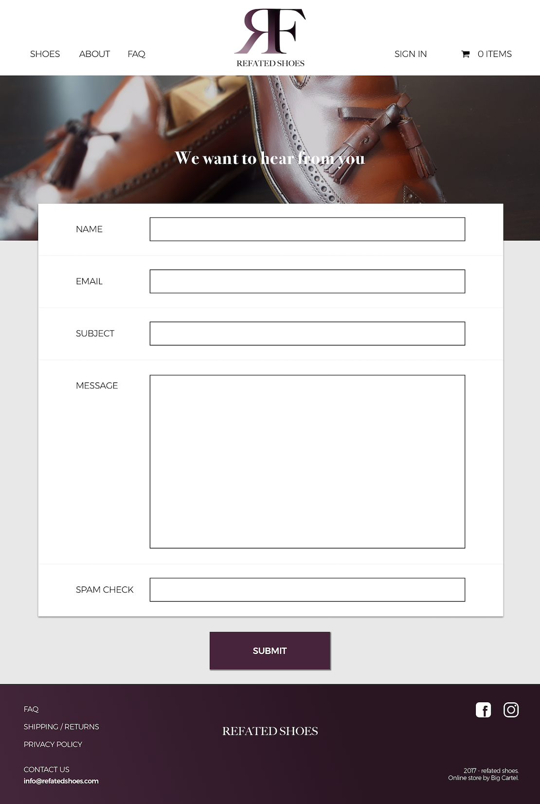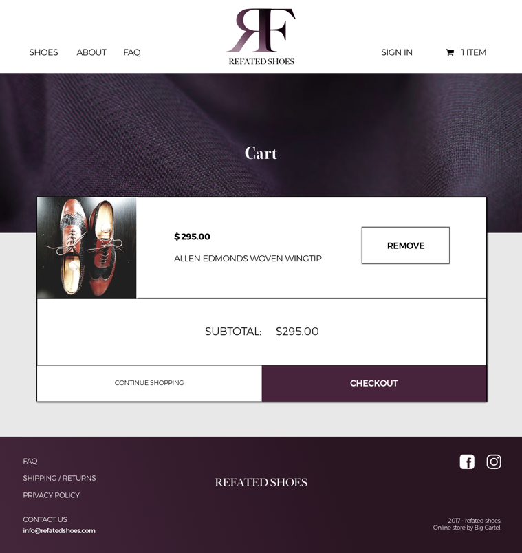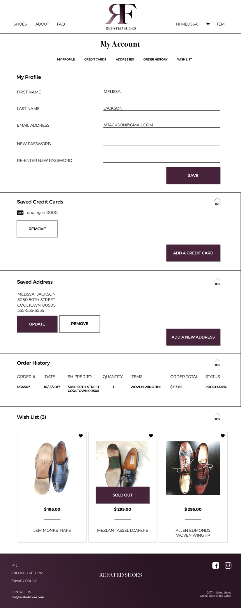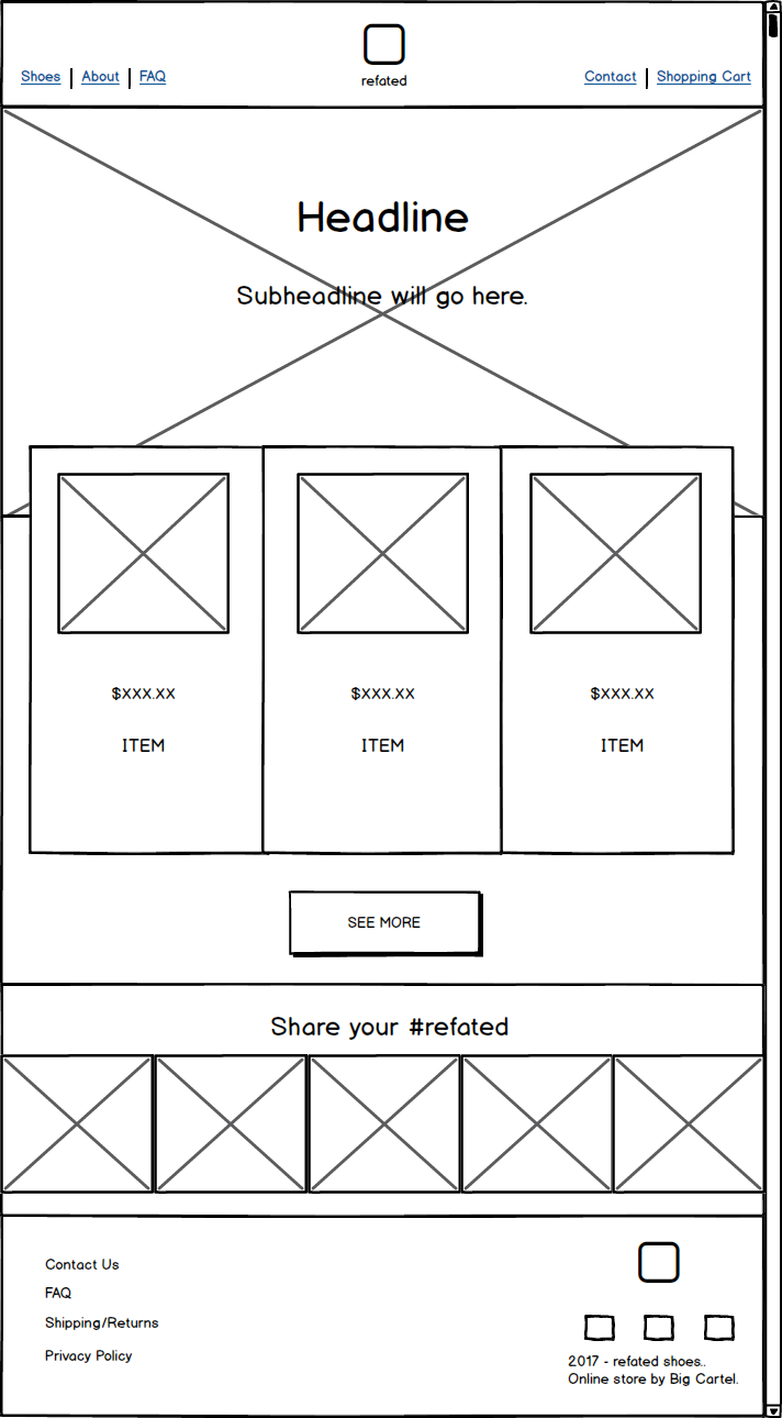 Working directly with the client, I always try to understand their goals and needs are before starting anything. The client’s mission for his company, Refated Shoes (RFS) is to repurpose and redesign older shoes. Although it is a sustainable business model, the client chose older shoes because he preferred the canvas they provided. He also viewed this as an art form rather than strictly a business, so revenue wasn’t his ultimate goal.