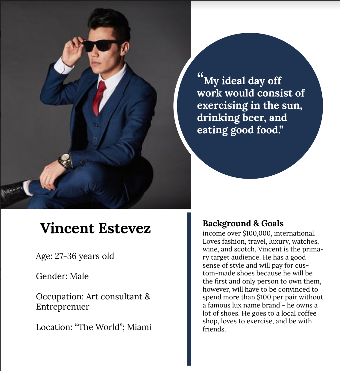 I wanted to get a better understanding of the market, so I started by researching his competitors. I quickly learned that there were quite a few similar companies, with ranging services. For instance, while RFS offered one-of-a-kind shoes, other competitors were creating custom handmade shoes with custom refinishing services or just creating shoes that looked as if they were refinished by hand on a large scale. Some details include: